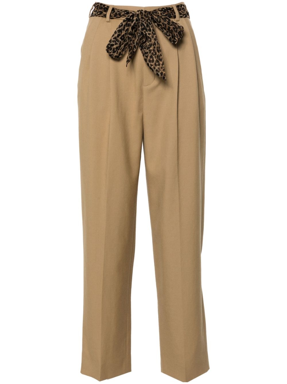 Belted wool-gabardine straight-leg pants