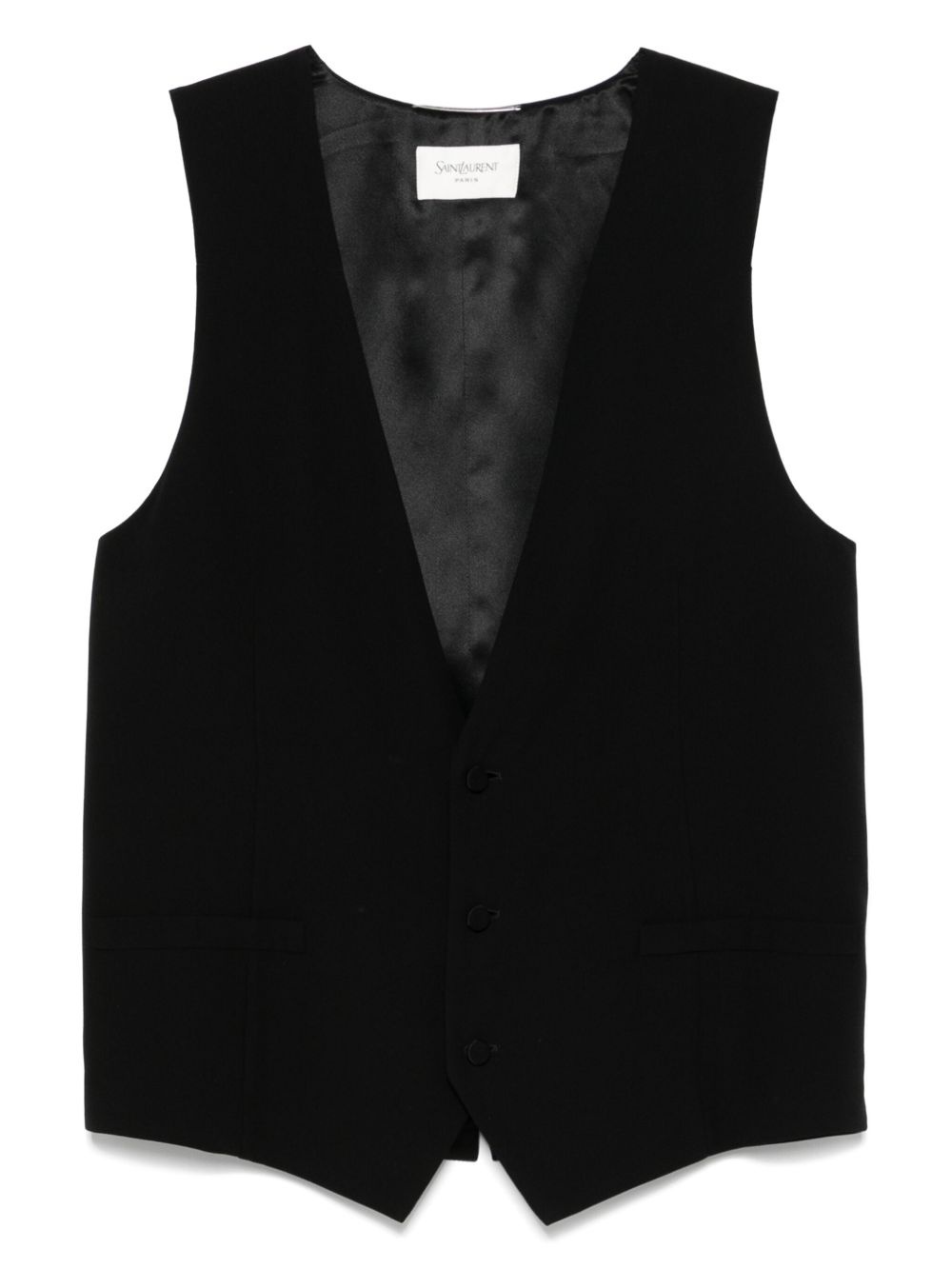 silk crepe waistcoat Highlights - Black - Front button fastening - Rear slit - Dart detailing - Short side slits Made in Italy Composition Lining: Silk 100% Outer: Silk 100% SIZE & FIT Model measurements Height 6 ft 2 in(1.87 m) Bust/Chest 37.79 in(96 cm) Hips 37.79 in(96 cm) Waist 30.31 in(77 cm) FittingInformation Designed for a slim fit, offering a comfortable fit that sits just away from the body The dart stitching adds structure and a closer fit in the torso of this piece Made from a midweight non-stretch fabric