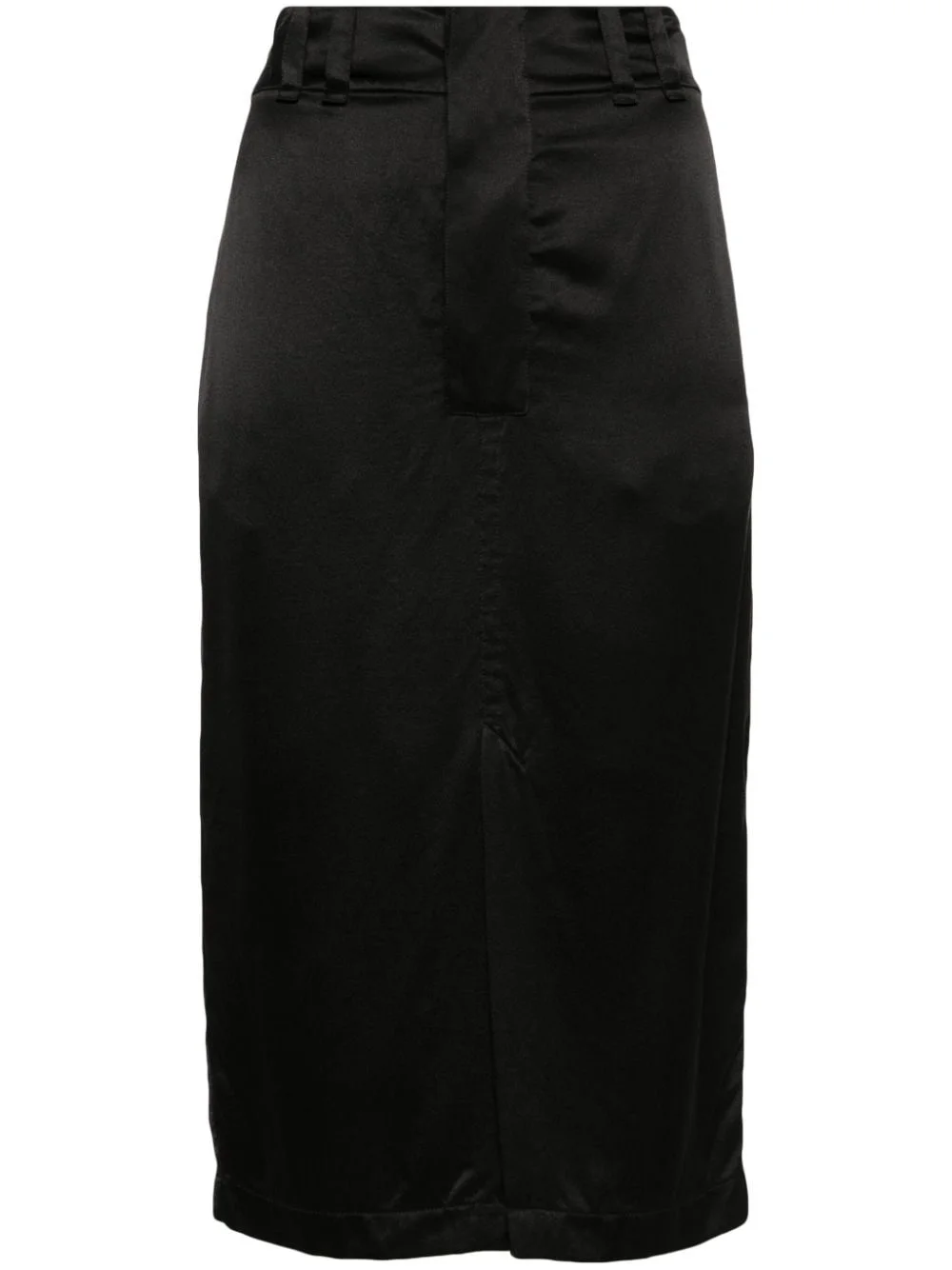 silk midi skirt Highlights - Black - Silk - Crepe de chine - Concealed front button fastening - Mid-rise - Belt loops - Two side slit pockets - Front slit - Dart detailing to the rear - Two rear flap pockets - Unlined - Straight hem - Mid-length Made in France Composition Silk 100% SIZE & FIT Measurement HIPS 37.99 in(96.5 cm) LENGTH 27.99 in(71.1 cm) WAIST 30 in(76.2 cm) Washing instructions Dry Clean Only