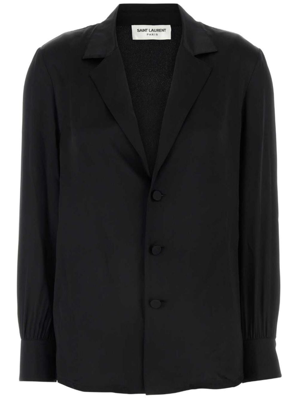 silk satin shirt Highlights - Black - Silk satin - Front button fastening - Plunging v-neck - Long sleeves - Buttoned cuffs Made in Italy Composition Silk 100% Washing instructions Read Manufacturer Guidelines