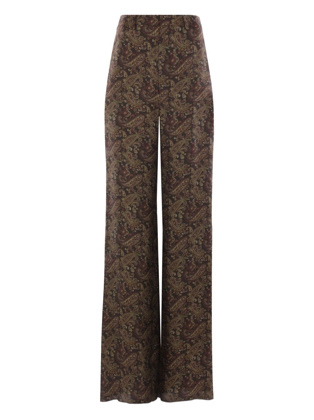 silk straight-leg trousers Highlights - Brown - Hook and zip fly fastening - Two side slit pockets - Belt loops - Paisley print Made in Italy Composition Silk 100%