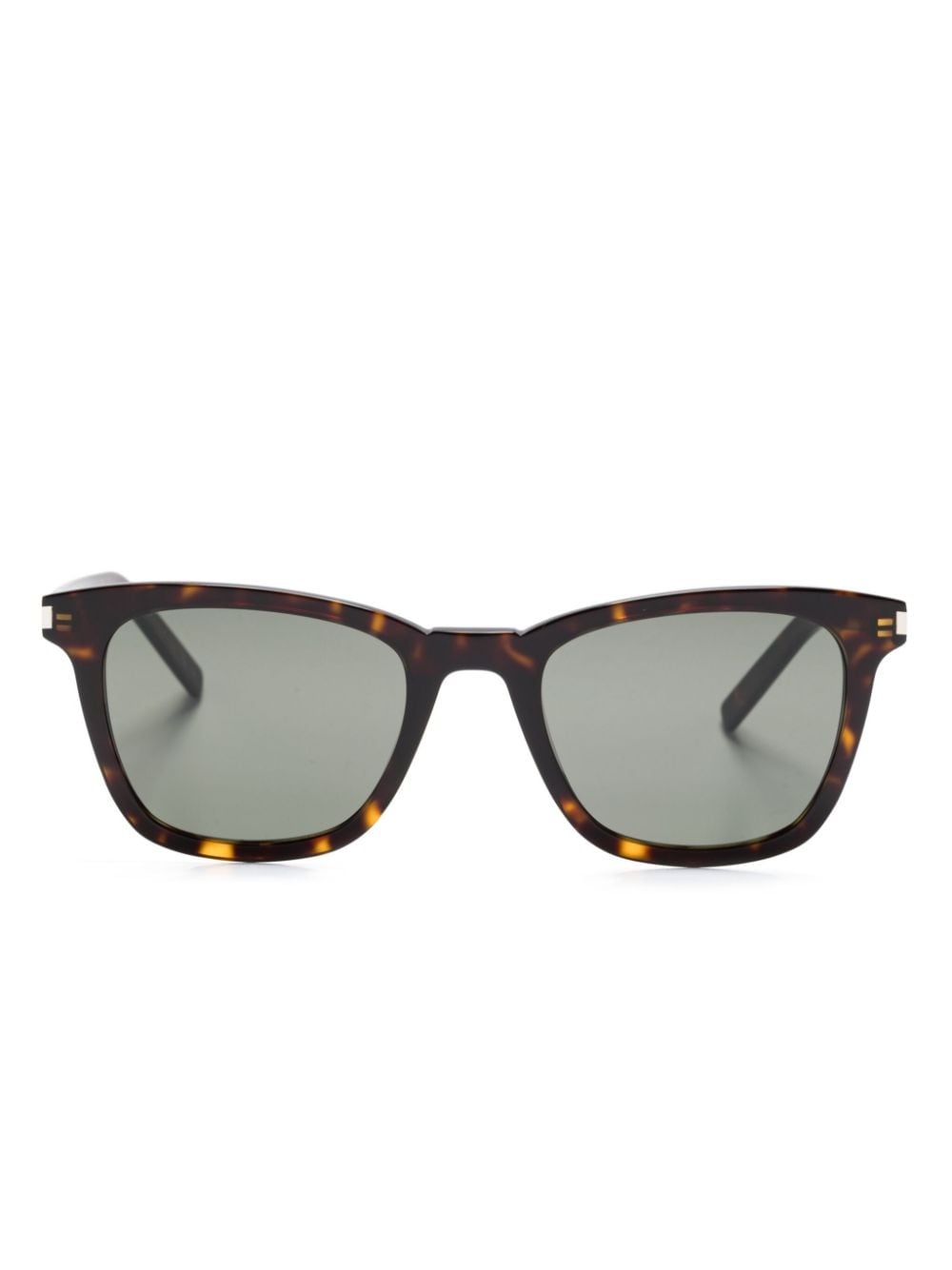 SL716 Slim sunglasses Highlights - Havana brown - Acetate - Tortoiseshell effect - Square frame - Green tinted lenses - Logo-engraved arm - Straight arms - Curved tips - These glasses come with a protective case. Made in Italy Composition Acetate 100% SIZE & FIT Measurement Arm Length 5.7 in(14.5 cm) Bridge Width 0.78 in(2 cm) Lens Diameter 1.96 in(5 cm) Total Width 5.51 in(14 cm)