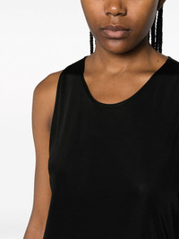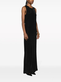 sleeveless high-shine jersey dress Highlights - Jet black - Stretch-jersey - High-shine finish - Sleeveless - Scoop neck - Flared hem - Floor-length Made in France Composition Viscose 100% Washing instructions Dry Clean Only