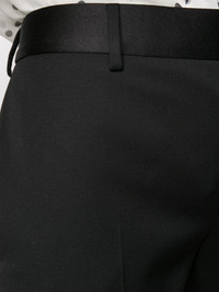 virgin-wool trousers Highlights - Black - Cotton and virgin wool - Black - Virgin wool - Concealed fly and button fastening - Belt loops - Satin trim - Two side slit pockets - Pressed crease - Two rear welt pockets - Cotton lining - Slim cut Made in Italy Composition Lining: Cotton 100% Outer: Polyester 100%, Virgin Wool 100% SIZE & FIT FittingInformation This piece fits true to size. We recommend you get your regular size Cut for a slim fit Made with a mid-weight non-stretch fabric Washing instructions Dry Clean Only