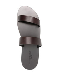 slip-on leather sandals Highlights - Black - Calf leather - Smooth grain - Double-strap design - Slip-on style - Round open toe - Branded leather insole - Flat leather sole Made in Italy Composition Sole: Calf Leather 100% Outer: Calf Leather 100% Lining: Calf Leather 100% SIZE & FIT Measurement HEEL 0.59 in(1.5 cm)