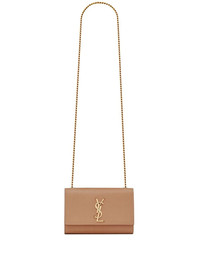 small Kate shoulder bag light brown calf leather signature YSL logo plaque gold-tone hardware sliding chain-link shoulder strap foldover top with magnetic fastening main compartment internal slip pocket Made in Italy Composition Outer: CALFSKIN 100% SIZE & FIT Measurement DEPTH 1.96 in(5 cm) HEIGHT 4.92 in(12.5 cm) WIDTH 7.87 in(20 cm)