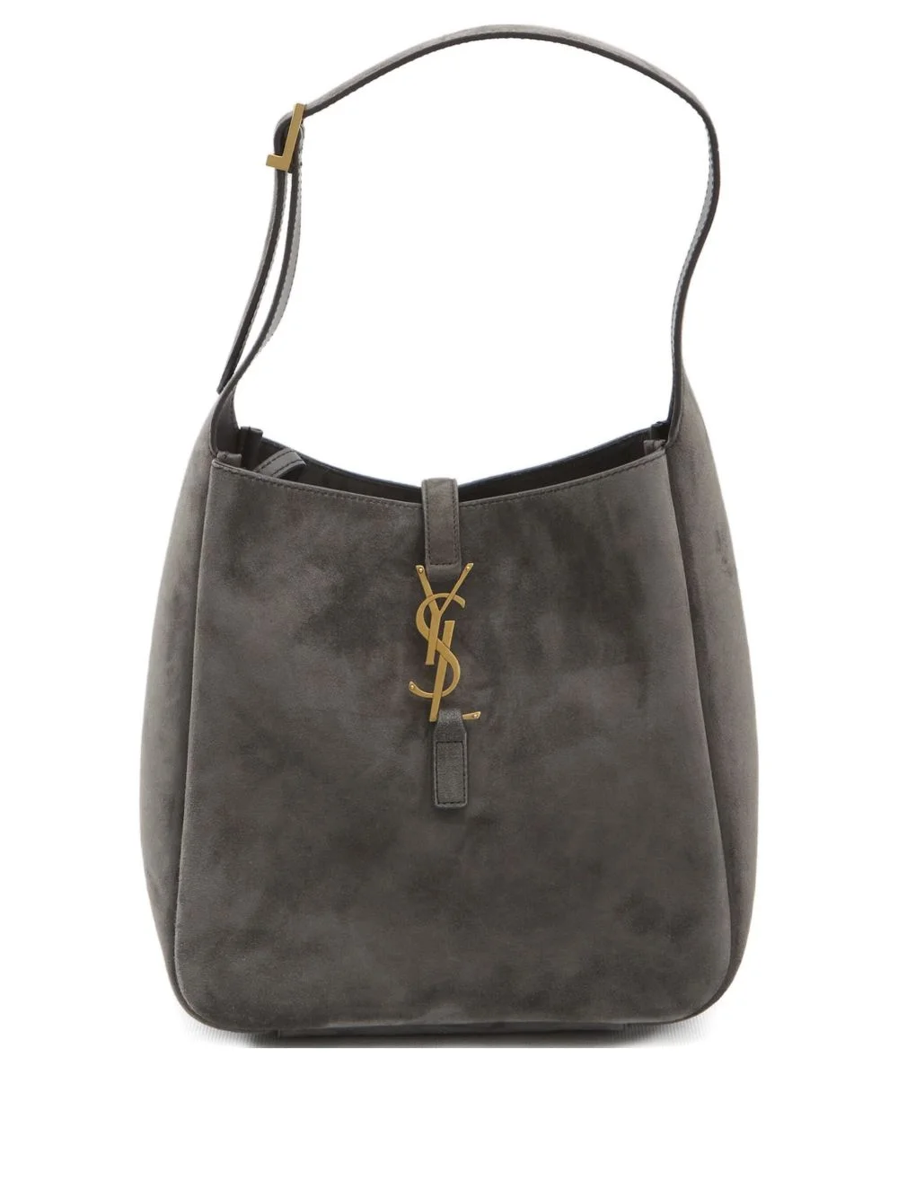 small Le 5 a 7 hook closure bag Highlights - Grey - Suede - Bronze-tone metal cassandre - Adjustable strap - Internal zip pocket - Dust bag Made in Italy Composition Outer: Suede 100%, Metal 100% Lining: Cotton 100% SIZE & FIT Measurement DEPTH 3.14 in(8 cm) HEIGHT 9.05 in(23 cm) WIDTH 8.66 in(22 cm)