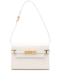small Manhattan shoulder bag This small Manhattan shoulder bag from Saint Laurent is a sleek way to organise essentials. Crafted from smooth calf leather, this slim accessory is fastened via a gold-tone magnetic clasp. Highlights - Cream beige - Calf leather - Adjustable detachable shoulder strap - Logo plaque at the front - Foldover top - Main compartment - Internal patch pocket - Internal logo patch - Gold-tone hardware - Magnetic fastening - This piece comes complete with a protective dust bag. Made in Italy Composition Outer: Calf Leather 100%, Brass 100% Lining: Calf Leather 100% SIZE & FIT Model measurements Height 5 ft 10 in(1.78 m) Bust/Chest 33.07 in(84 cm) Hips 36.61 in(93 cm) Waist 24.8 in(63 cm) Measurement HEIGHT 6.69 in(17 cm) STRAP 9.44 in(24 cm) WIDTH 9.44 in(24 cm) DEPTH 2.36 in(6 cm)