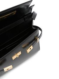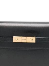 small Manhattan shoulder bag This small Manhattan shoulder bag from Saint Laurent is a sleek way to organise essentials. Crafted from smooth calf leather, this slim accessory is fastened via a gold-tone magnetic clasp. Highlights - Black - Calf leather - Front flap closure with magnetic strap fastening - Adjustable detachable shoulder strap - Main compartment - Internal logo patch - Internal slip pocket - Logo-engraved gold-tone hardware Made in Italy Composition Outer: Calf Leather 100% SIZE & FIT Model measurements Height 5 ft 10 in(1.77 m) Bust/Chest 32.28 in(82 cm) Hips 35.03 in(89 cm) Waist 25.19 in(64 cm) Measurement DEPTH 2.36 in(6 cm) HEIGHT 6.69 in(17 cm) STRAP 9.44 in(24 cm) WIDTH 9.44 in(24 cm)
