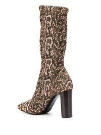 snake-print elasticated boots Slowly but surely, the animal prints have made a way to enter our life. These snake-print elasticated boots from Saint Laurent are surely a great bet for this winter. Poison-free. Made in Italy Composition Outer: Fabric 100% Lining: Fabric 100% Sole: Calf Leather 100% SIZE & FIT Measurement HEEL 3.74 in(9.5 cm) HEIGHT 9.05 in(23 cm)