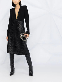 snakeskin-effect midi skirt Achieving sophisticated style is easier than you think. With a subtle snakeskin effect, this midi skirt from Saint Laurent will add refinement to any look. If only everything in life was so straightforward. Highlights - Black - Snakeskin effect - High waist - A-line - Mid-length Made in Italy Composition Outer: Viscose 80%, Silk 20% Lining: Silk 100% SIZE & FIT Model measurements Height 5 ft 10 in(1.78 m) Bust/Chest 33.07 in(84 cm) Hips 33.07 in(84 cm) Waist 24.4 in(62 cm) Measurement HIPS 40.55 in(103 cm) LENGTH 29.13 in(74 cm) WAIST 31.1 in(79 cm) FittingInformation This piece fits true to size. We recommend you get your regular size Designed to be fitted at the waist and hips, loose over the leg Made with a mid-weight non-stretch fabric Washing instructions Dry Clean Only