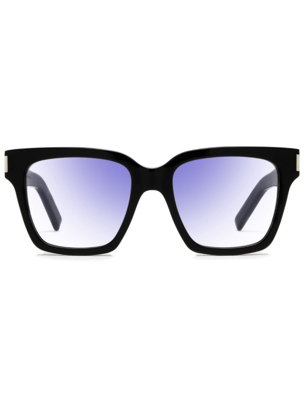 square-frame tinted-lens sunglasses black acetate square frame tinted lenses UV-protective lenses sculpted arms curved tips These glasses come with a protective case. Made in United States Composition Acetate 100% SIZE & FIT Measurement Arm Length 57.08 in(145 cm) Bridge Width 7.48 in(19 cm) Lens Diameter 21.25 in(54 cm)