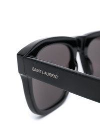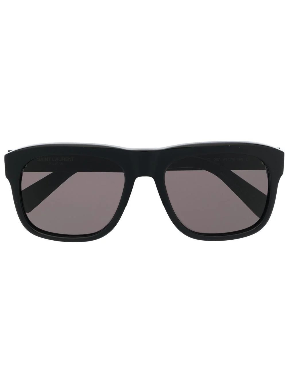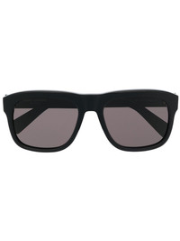 square-frame tinted sunglasses jet black square frame grey tinted lenses silver-tone logo lettering nose pads straight arms curved tips UV-protective lenses These glasses come with a protective case. Made in Italy Composition Acetate 100% SIZE & FIT Measurement Arm Length 5.7 in(14.5 cm) Bridge Width 0.74 in(1.9 cm) Lens Diameter 2.24 in(5.7 cm) Total Width 5.51 in(14 cm)