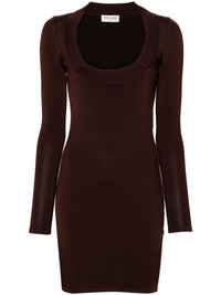 Decollete mini dress This midi dress from Saint Laurent boasts a knitted construction with a square-neck design. Meanwhile, it is fitted long sleeves that lend a pared-back style. Highlights - Chocolate brown - Stretch-design - Knitted construction - Scoop neck - Long sleeves - Unlined - Bodycon design - Straight hem - Thigh-length Made in Italy Composition Viscose 88%, Polyamide 11%, Elastane 1% SIZE & FIT Model measurements Height 5 ft 10 in(1.77 m) Bust/Chest 33.07 in(84 cm) Hips 34.64 in(88 cm) Waist 23.22 in(59 cm) Measurement SLEEVE LENGTH 24.01 in(61 cm) HIPS 32 in(81.3 cm) LENGTH 33.5 in(85.1 cm) WAIST 25.98 in(66 cm) BUST 30.98 in(78.7 cm) FittingInformation Designed for a close fit throughout Made with a midweight knit, this piece offers some stretch This piece fits true to size – take your usual size