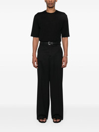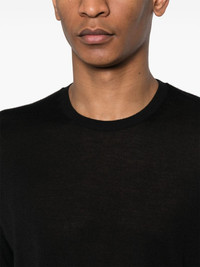 straight-hem knitted T-shirt Highlights - Black - Knitted construction - Fine knit - Semi-sheer construction - Round neck - Short sleeves - Straight hem Made in Italy Composition Cashmere 35%, Wool 35%, Silk 30% SIZE & FIT Model measurements Height 6 ft 2 in(1.87 m) Bust/Chest 36.22 in(92 cm) Hips 37 in(94 cm) Waist 27.95 in(71 cm) FittingInformation Designed to be unstructured, offering a loose fit throughout Made with a lightweight knit, this piece offers some stretch This piece fits true to size – take your usual size