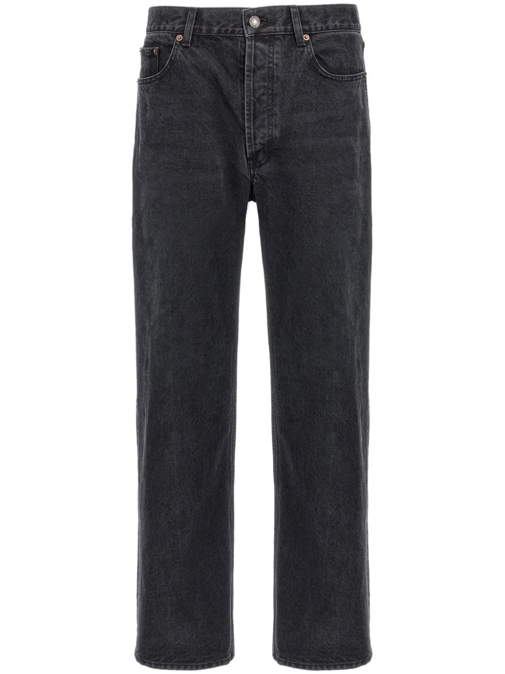 straight-leg jeans Highlights - Black - Cotton - Washed denim - Straight leg - Button fly fastening - Belt loops - Classic five pockets - Logo patch to the rear Imported Composition Cotton 100%, Calf Leather 100% SIZE & FIT FittingInformation Designed with a straight leg, these jeans allow for an unrestricted and comfortable fit over the leg Sturdy and hard-wearing, this denim piece offers no stretch