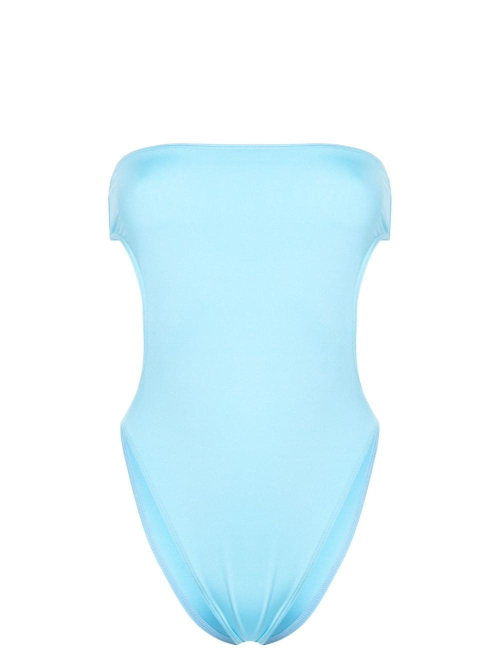 strapless cut-out swimsuit Highlights - Alice blue - Stretch-design - Strapless - Bandeau style - Cut-out detailing - Low back - Full lining - Slip-on style - Be mindful to try on swimwear over your own garments. Made in Italy Composition Polyamide 72%, Elastane 28% Washing instructions Machine Wash
