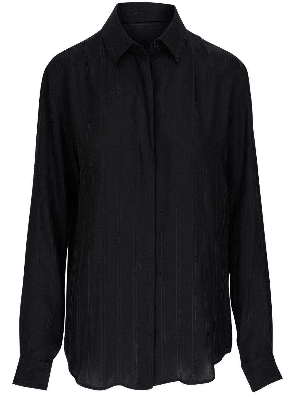 striped button-up silk shirt Highlights - Black - Silk - Vertical stripe pattern - Pointed flat collar - Concealed front button fastening - Long sleeves - Buttoned cuffs - Curved hem Made in Italy Composition Silk 100% SIZE & FIT Measurement SLEEVE LENGTH 20.47 in(52 cm) LENGTH 29.52 in(75 cm) WAIST 38.58 in(98 cm) BUST 38.58 in(98 cm) Washing instructions Read Manufacturer Guidelines