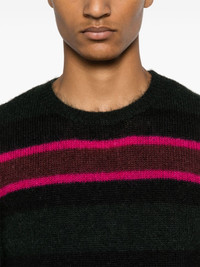striped jumper Highlights - Dark green/multicolour - Mohair blend - Knitted construction - Horizontal stripe pattern - Ribbed crew neck - Long sleeves - Ribbed cuffs and hem Made in Italy Composition Mohair 64%, Polyamide 31%, Wool 5% SIZE & FIT Model measurements Height 6 ft 1 in(1.85 m) Bust/Chest 35.43 in(90 cm) Hips 37.79 in(96 cm) Waist 29.92 in(76 cm) FittingInformation Designed for a slim fit, offering a comfortable fit that sits just away from the body The ribbed hem offers a close, comfortable fit Made with a midweight knit, this piece offers some stretch This piece fits true to size – take your usual size Washing instructions Dry Clean Only