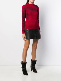 striped knitted jumper Long gone are the days when knitwear was boring. This red and black cotton-wool blend jumper from Saint Laurent will keep you warm and in style. Featuring a ribbed round neck, long sleeves, horizontal stripes and a ribbed hem and cuffs. Made in Italy Composition Cotton 42%, Wool 34%, Viscose 14%, Polyester 10% SIZE & FIT Model measurements Height 5 ft 9 in(1.76 m) Bust/Chest 32.28 in(82 cm) Hips 35.43 in(90 cm) Waist 24.01 in(61 cm) FittingInformation This piece fits true to size. We recommend you get your regular size Cut for a relaxed fit Made with a mid-weight fabric Washing instructions Dry Clean Only