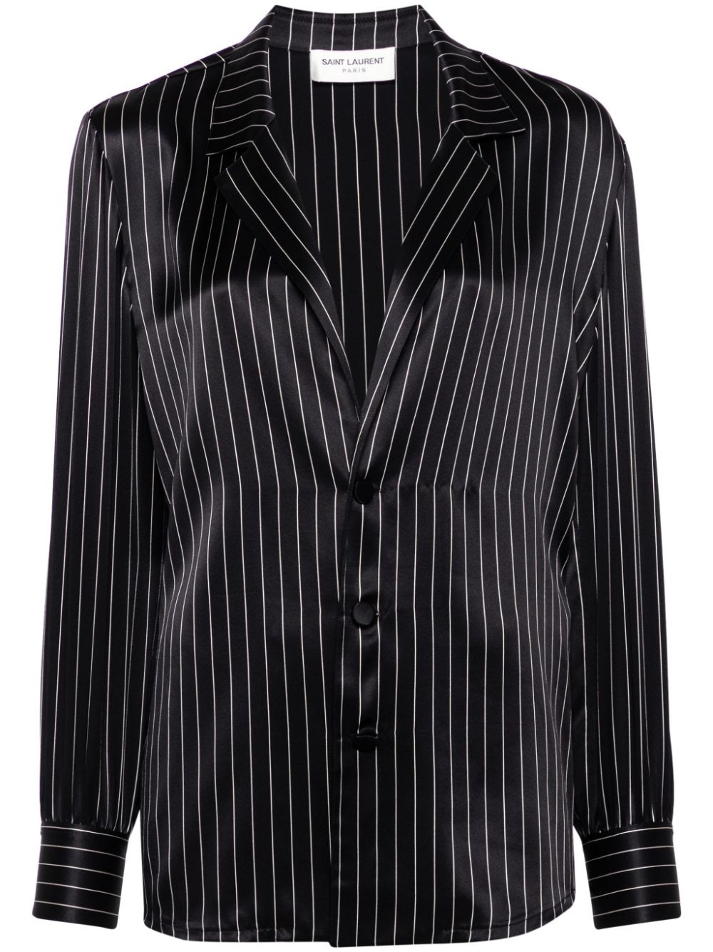 striped silk pajam shirt Highlights - Black/white - Silk - Satin finish - Vertical stripe pattern - Notched collar - Long sleeves - Buttoned cuffs - Curved hem - Front button fastening Made in Italy Composition Silk 100% SIZE & FIT Model measurements Height 5 ft 10 in(1.78 m) Bust/Chest 33.07 in(84 cm) Hips 36.61 in(93 cm) Waist 24.8 in(63 cm) FittingInformation Designed to be unstructured, offering a loose fit throughout Made from a lightweight non-stretch fabric This piece fits true to size – take your usual size Washing instructions Dry Clean Only