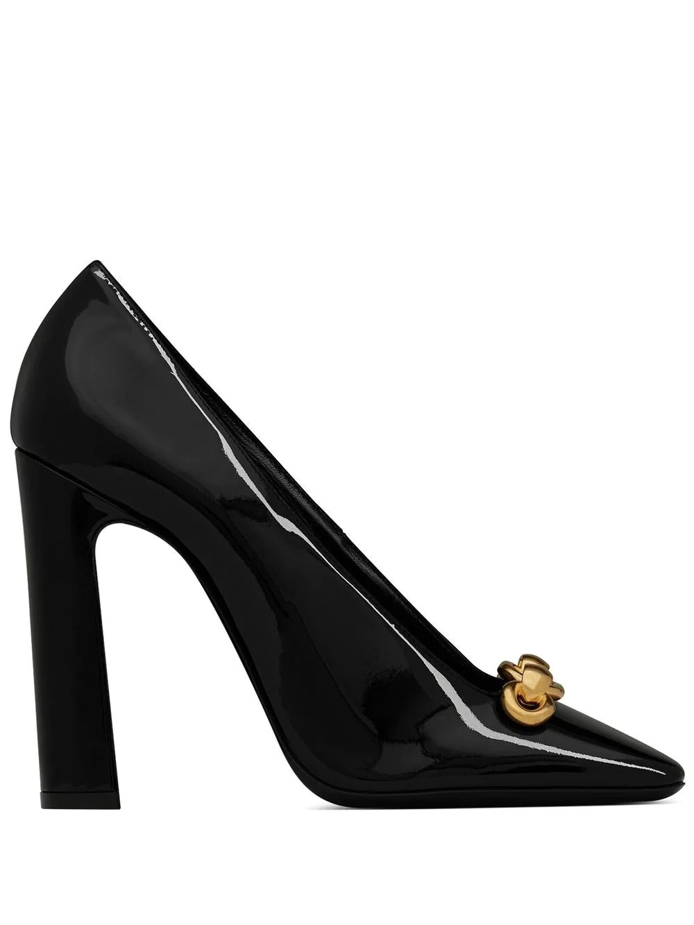 Swing chain-link pumps black leather glossy finish chain-link detailing gold-tone hardware square toe branded leather insole 110mm heel slip-on style Made in Italy Composition Lining: Leather 100% Sole: Leather 100% Outer: Leather 100%