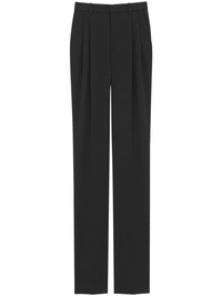 high-waisted trousers Parisian fashion house Saint Laurent was established in the '60s and quickly revolutionised the fashion industry by introducing the ready-to-wear concept, which quickly blended in with the brand's haute couture DNA. Today, tailoring influences and contemporary styles co-exist season after season and are often merged to create pieces such as these wool trousers: they offer a straight tailored cut enhanced by pleated details over the waist. Highlights - Black - Wool - High-waisted - Straight leg - Tailored cut - Belt loops - Pleat detailing - Two side inset pockets - Two rear welt pockets - Concealed front button, hook and zip fastening Made in Italy Composition Outer: Wool 100% Lining: Cotton 97%, Spandex/Elastane 3% SIZE & FIT Model measurements Height 5 ft 9 in(1.76 m) Bust/Chest 31.88 in(81 cm) Hips 35.43 in(90 cm) Waist 24.8 in(63 cm) FittingInformation Designed for a straight-leg fit, these trousers allow for a close fit at the waist and an unrestricted, comfortable fit over the leg The unfinished hems allow for the length to be altered Made from a midweight stretch fabric, this piece offers elasticity and flexibility when worn This piece fits true to size – take your usual size Washing instructions Dry Clean Only