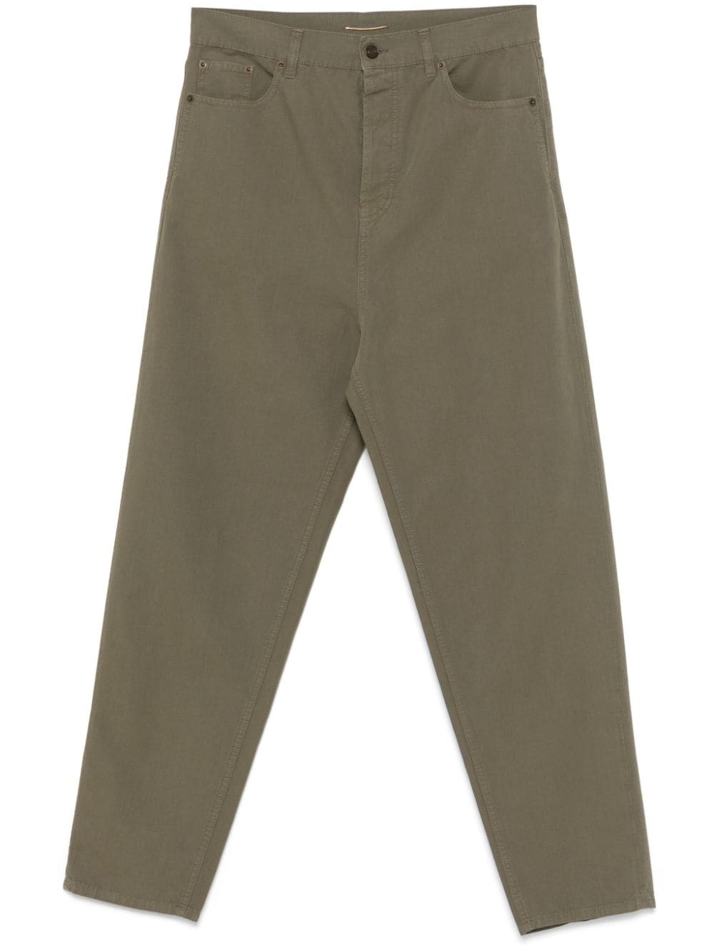 tapered jeans Highlights - Khaki - Cotton - Tapered leg - Button fly fastening - Belt loops - Classic five pockets Made in Italy Composition Calf Leather 100%, Cotton 100% SIZE & FIT Model measurements Height 5 ft 9 in(1.75 m) Bust/Chest 31.88 in(81 cm) Hips 34.64 in(88 cm) Waist 24.01 in(61 cm) FittingInformation This piece fits very large – take two sizes down Measurement FRONT RISE 14.48 in(36.8 cm) INSIDE LEG 30.51 in(77.5 cm) BACK RISE 15.98 in(40.6 cm) HIPS 39.01 in(99.1 cm) Hem Width 14.01 in(35.6 cm) WAIST 32.99 in(83.8 cm)