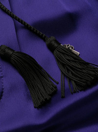 tapered-leg silk trousers royal blue/black silk tassel detail high waist elasticated drawstring waistband two side slit pockets two rear welt pockets elasticated ankles Made in Italy Composition Lining: Silk 100% Outer: Viscose 100% SIZE & FIT Model measurements Height 6 ft 2 in(1.87 m) Bust/Chest 36.41 in(92.5 cm) Hips 37 in(94 cm) Waist 29.52 in(75 cm) Washing instructions Dry Clean Only