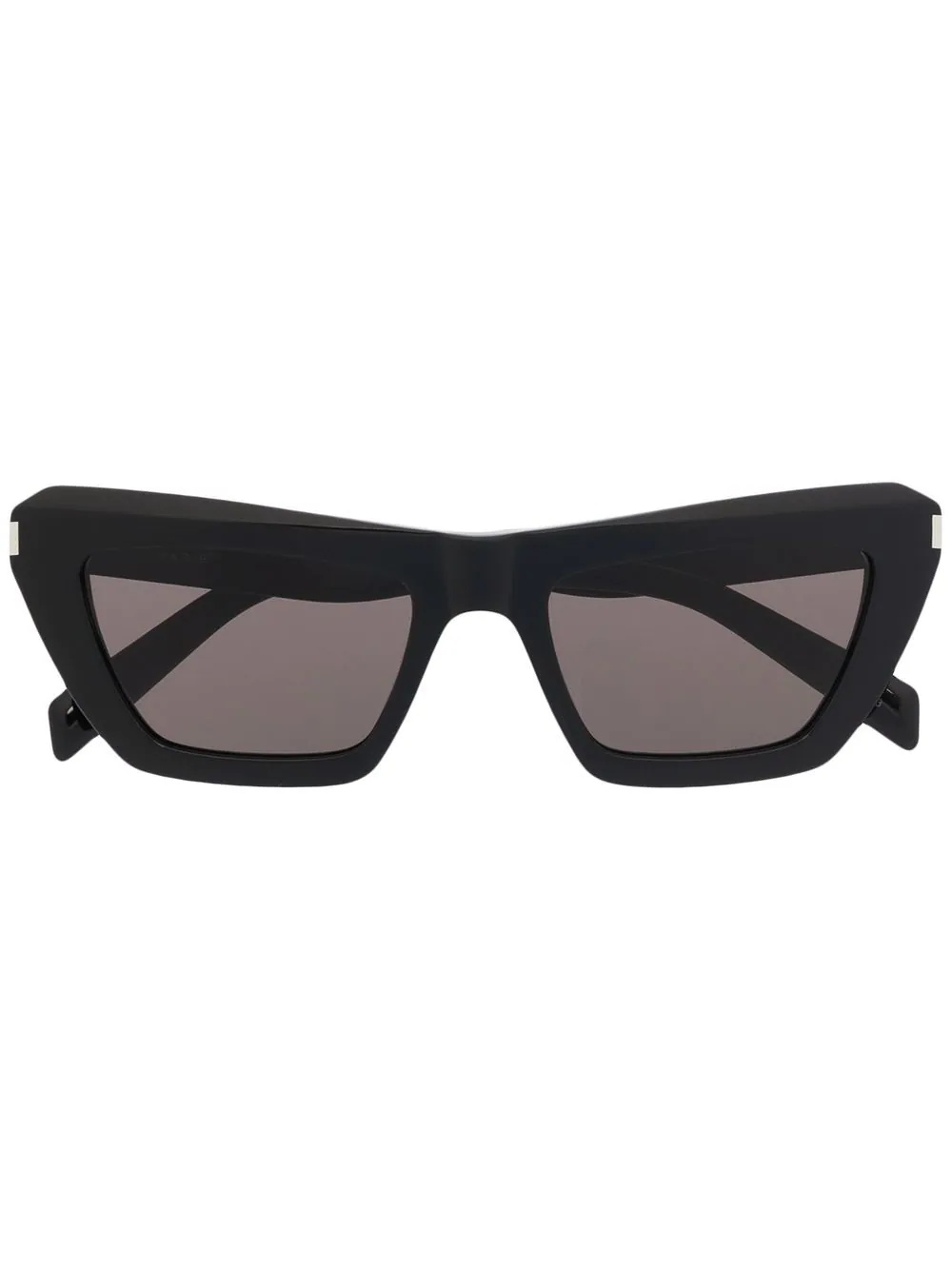 tinted-lenses oversize-frame sunglasses black acetate tinted lenses oversize frame raised bridge straight arms curved tips These glasses come with a protective case. Made in Italy Composition Acetate 100% SIZE & FIT Measurement Arm Length 5.7 in(14.5 cm) Bridge Width 0.74 in(1.9 cm) Lens Diameter 2.04 in(5.2 cm) Total Width 5.62 in(14.3 cm)