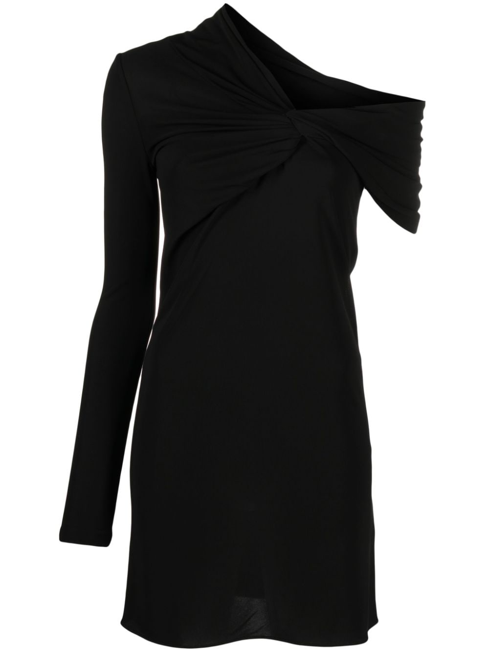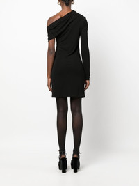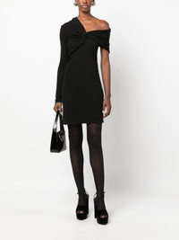 twist-front asymmetric minidress Saint Laurent puts a striking twist on the classic LBD with this minidress. It’s cut from black jersey to an asymmetric off-shoulder silhouette with a single long sleeve. Twisted detailing at the front enhances the off-kilter look. Highlights - Black - Jersey texture - Asymmetric design - Twist detailing - Off-shoulder - Single long sleeve - Single short sleeve - Straight hem Made in Italy Composition Viscose 100% SIZE & FIT Model measurements Height 5 ft 10 in(1.77 m) Bust/Chest 29.92 in(76 cm) Hips 34.25 in(87 cm) Waist 23.62 in(60 cm) Measurement HIPS 29.92 in(76 cm) LENGTH 31.88 in(81 cm) WAIST 26.77 in(68 cm) FittingInformation Designed for a slim fit that sits just away from the body offering a close yet comfortable fit Made from a midweight non-stretch fabric, this piece offers minimal elasticity when worn This piece fits true to size – take your usual size Washing instructions Dry Clean Only