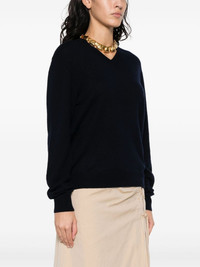 V-neck knitted jumper Highlights - Navy blue - Cashmere-silk blend - Knitted construction - V-neck - Long sleeves - Ribbed cuffs and hem - Straight hem Made in Italy Composition Cashmere 60%, Silk 40% SIZE & FIT Model measurements Height 5 ft 10 in(1.78 m) Bust/Chest 33.07 in(84 cm) Hips 35.82 in(91 cm) Waist 25.98 in(66 cm) Measurement SLEEVE LENGTH 28.74 in(73 cm) LENGTH 25.19 in(64 cm) WAIST 35.43 in(90 cm) BUST 43.3 in(110 cm) FittingInformation Designed to be unstructured, offering a loose fit throughout The ribbed hem offers a close, comfortable fit Made with a lightweight knit, this piece offers some stretch This piece fits true to size – take your usual size