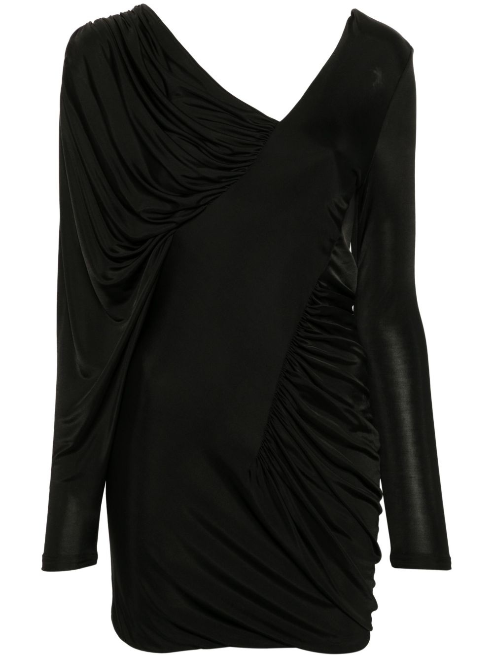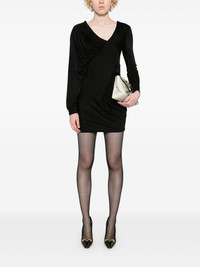 draped mini dress Parisian luxury fashion house Saint Laurent adds unexpected gathered detailing to this minidress, creating an intriguing silhouette that is further enhanced by a V-neckline. Highlights - Black - Draped panel detail - V-neck - Long sleeves - V-back - Thigh-length Made in Italy Composition Viscose 100% SIZE & FIT Model measurements Height 5 ft 9 in(1.74 m) Bust/Chest 34.64 in(88 cm) Hips 36.61 in(93 cm) Waist 26.37 in(67 cm) FittingInformation Designed for a slim fit that sits just away from the body offering a close yet comfortable fit Made from a midweight non-stretch fabric, this piece offers minimal elasticity when worn This piece fits true to size – take your usual size Measurement BUST 25.98 in(66 cm) LENGTH 35.03 in(89 cm) WAIST 25.98 in(66 cm) SLEEVE LENGTH 17.71 in(45 cm) HIPS 29.13 in(74 cm) Washing instructions Dry Clean Only