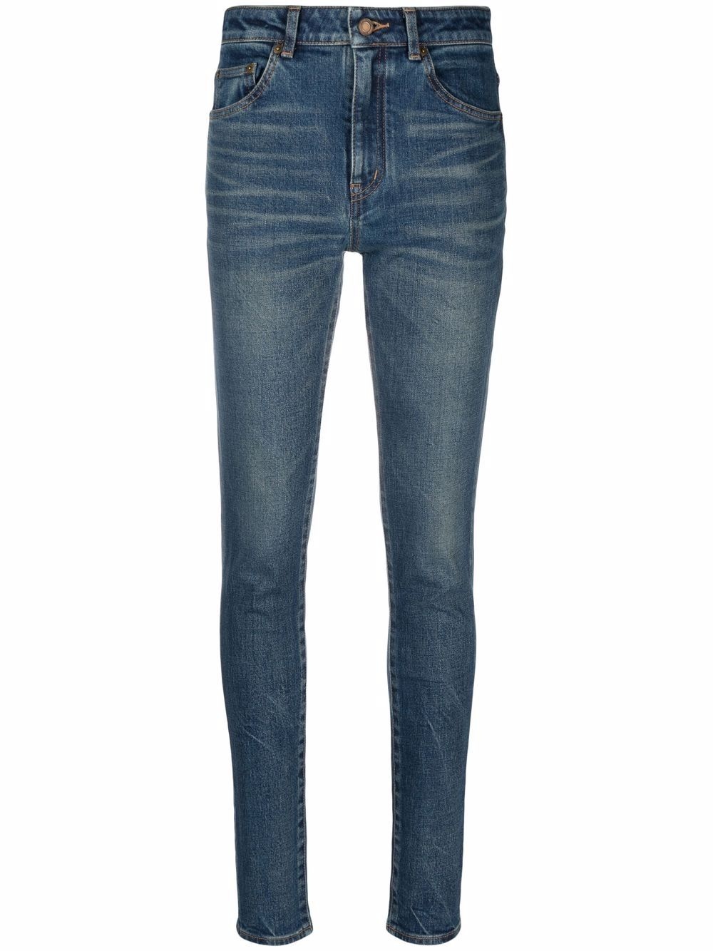 whiskered skinny jeans Subtle whiskering adds a laid-back finish to these jeans from Saint Laurent. Presented in a washed blue hue, their skinny design is imbued with a timeless feel. Highlights - Indigo - Cotton blend - Classic five pockets - Belt loops - Front button and zip fastening - Skinny cut Imported Composition Cotton 98%, Spandex/Elastane 2% SIZE & FIT Model measurements Height 5 ft 10 in(1.77 m) Bust/Chest 29.92 in(76 cm) Hips 34.25 in(87 cm) Waist 23.62 in(60 cm) FittingInformation This piece fits true to size. We recommend you get your regular size Cut for a slim fit Made with a mid-weight stretch fabric Washing instructions Dry Clean Only