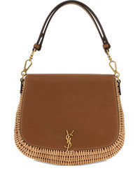 wicker leather voltaire tote bag Highlights - Natural brick - Wicker construction - Leather flap - Antiqued golden metal hardware - Top handle - This piece comes complete with a protective dust bag. Made in Italy Composition Outer: Brass 100%, Wood 50%, Calf Leather 50% SIZE & FIT Measurement DEPTH 2.95 in(7.5 cm) HEIGHT 8.66 in(22 cm) WIDTH 7.87 in(20 cm) HANDLE 5.7 in(14.5 cm)