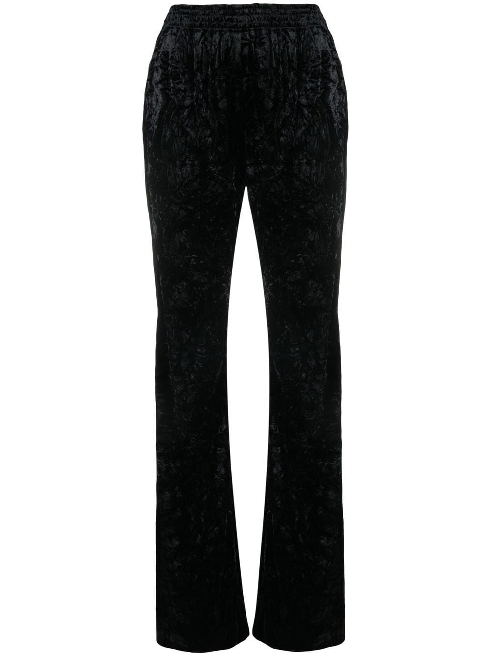 wide-leg velvet trousers Combining casual and elegant, these trousers showcase Saint Laurent's versatility. Crafted in luscious velvet, the wide-leg pair benefits from an elasticated waistband for comfort. Made in Italy Composition Lining: Silk 90% Outer: Polyester 90% Elastane 10% SIZE & FIT Model measurements Height 5 ft 10 in(1.79 m) Bust/Chest 31.1 in(79 cm) Hips 35.03 in(89 cm) Waist 24.01 in(61 cm) Measurement INSIDE LEG 36.61 in(93 cm) HIPS 37.79 in(96 cm) WAIST 25.98 in(66 cm) FittingInformation This piece fits true to size. We recommend you get your regular size Designed to be fitted at the waist and through the thigh, loose from the knee Made with a mid-weight stretch fabric Washing instructions Dry Clean Only