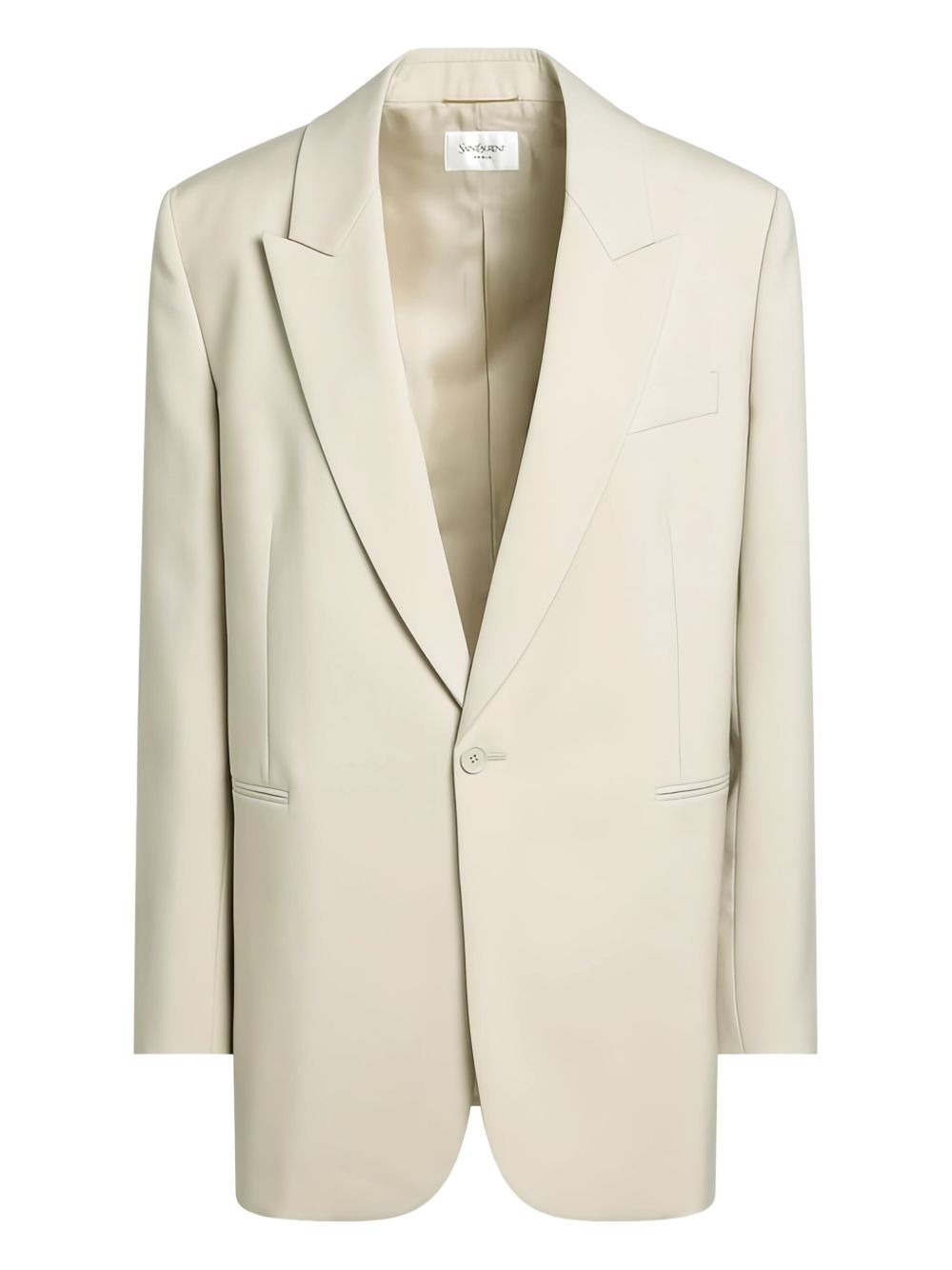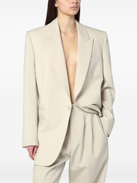 wool blazer Highlights - Light beige - Front button fastening - Two front jetted pockets - Multiple internal slip pockets - American rear vent Made in Italy Composition Lining: Silk 100% Outer: Wool 100% Washing instructions Dry Clean Only