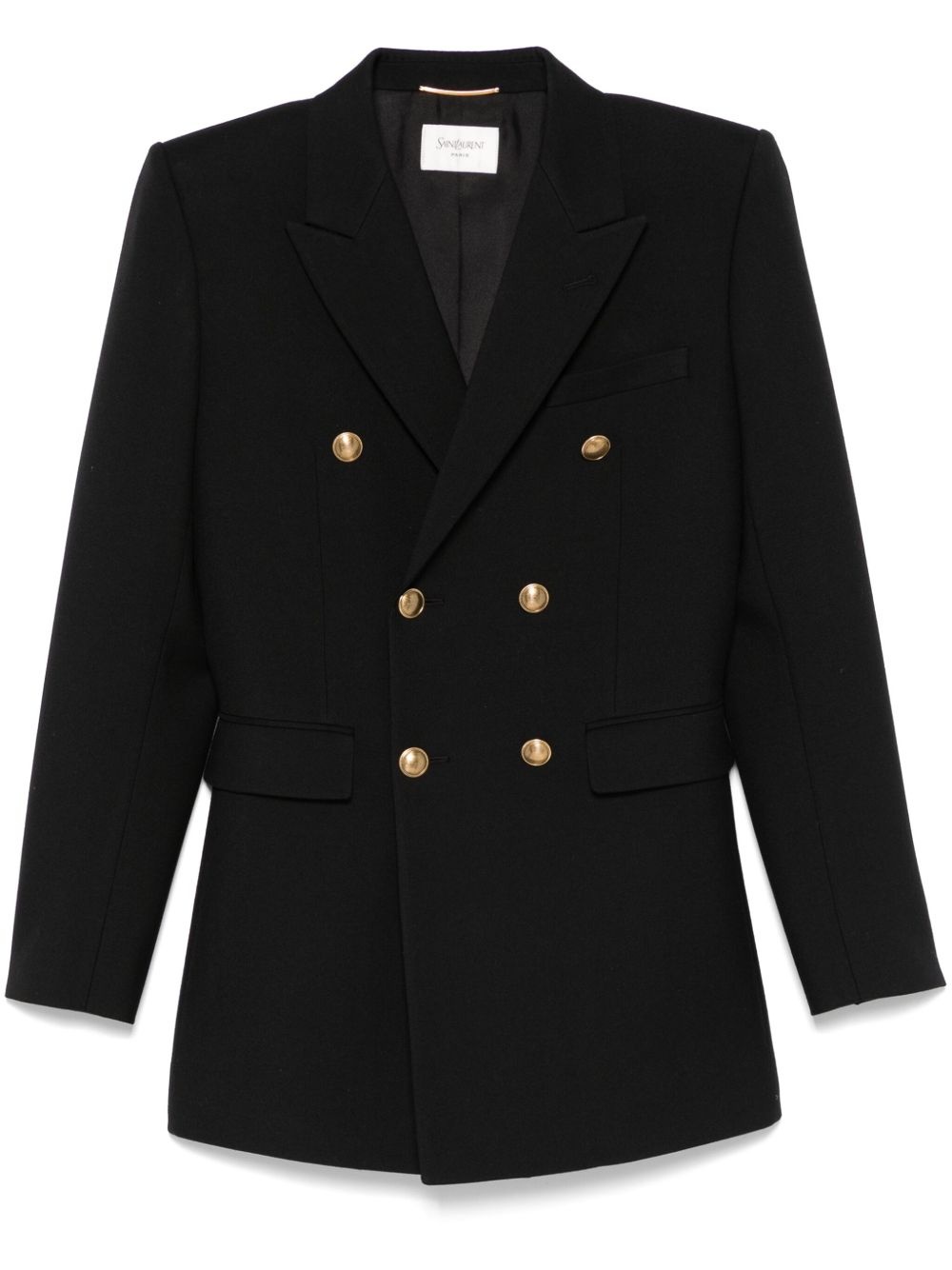 wool gabardine blazer Highlights - Black - Double-breasted button fastening - Shoulder pads - Chest welt pocket - Two side flap pockets Made in Italy Composition Lining: Silk 100%, Cotton 97%, Elastane 3% Outer: Wool 100% SIZE & FIT Model measurements Height 5 ft 10 in(1.78 m) Bust/Chest 33.46 in(85 cm) Hips 36.22 in(92 cm) Waist 23.22 in(59 cm) FittingInformation Designed for a relaxed fit, this piece allows for comfort and movement when worn The internal shoulder pads offer a structured shape Made from a midweight fabric
