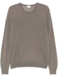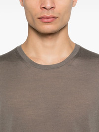wool T-shirt Highlights - Gunmetal grey - Ribbed cuffs and hem - Crew neck - Long sleeves Made in Italy Composition Wool 100% SIZE & FIT Model measurements Height 6 ft 1 in(1.85 m) Bust/Chest 35.82 in(91 cm) Hips 37.79 in(96 cm) Waist 29.13 in(74 cm) FittingInformation Designed for a relaxed fit, this piece allows for comfort and movement when worn Made with a lightweight knit, this piece offers some stretch