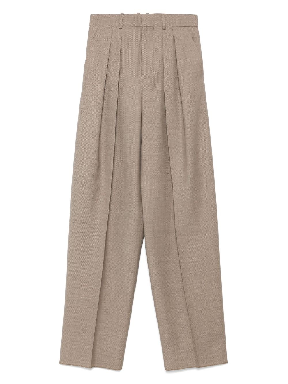 Pleated wool-canvas wide-leg pants Beige