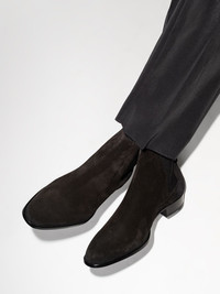 Wyatt 30mm suede Chelsea boots Yes, these boots were definitely made for walking. Constructed from dark brown suede and boasting a slip-on style, as a matter of fact, you'll be wearing them pretty much every day. That's how well Saint Laurent has made them. Highlights - Black - Pull-tab at the heel - Pointed toe - Low block heel Made in Italy Composition Lining: Leather 100% Sleeve Lining: Leather 100% Outer: Suede 100% SIZE & FIT Model measurements Height 6 ft 2 in(1.88 m) Bust/Chest 35.03 in(89 cm) Hips 35.82 in(91 cm) Waist 27.95 in(71 cm) FittingInformation This piece fits true to size. We recommend you get your regular size Measurement CIRCUMFERENCE 9.44 in(24 cm) HEEL 1.18 in(3 cm) HEIGHT 5.9 in(15 cm) Sole height 0.39 in(1 cm)
