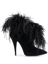 110mm Zizi booties Highlights - Black - Suede, leather and ostrich feather - Black - Feather detailing - High tapered heel Made in Italy Composition Outer: Suede 100%, Ostrich Feather 100% Sole: Calf Leather 100% Lining: Calf Leather 100%