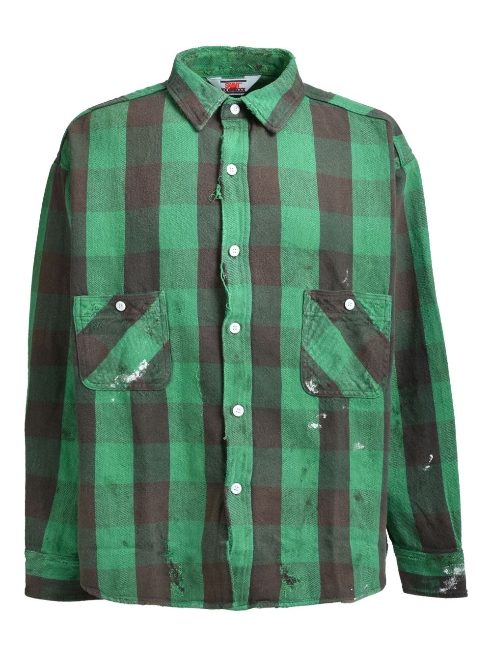 check-print shirt Highlights - Apple green - Front button fastening - Chest patch pocket - Buttoned-cuff sleeves - Distressed finish Imported Composition Cotton 100%