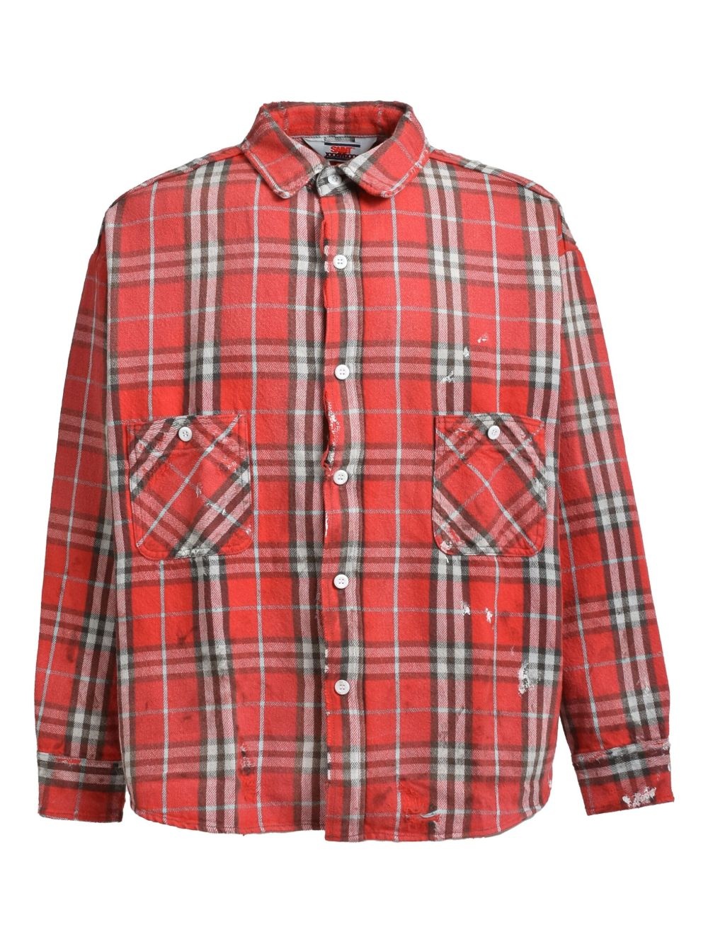 check-print shirt Highlights - Bright red - Front button fastening - Two chest patch pockets - Buttoned-cuff sleeves - Distressed finish Imported Composition Cotton 100%