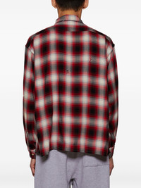 + LASTMAN Convertible-Collar Distressed Paint-Splattered Checked Oxford Shirt Red