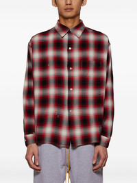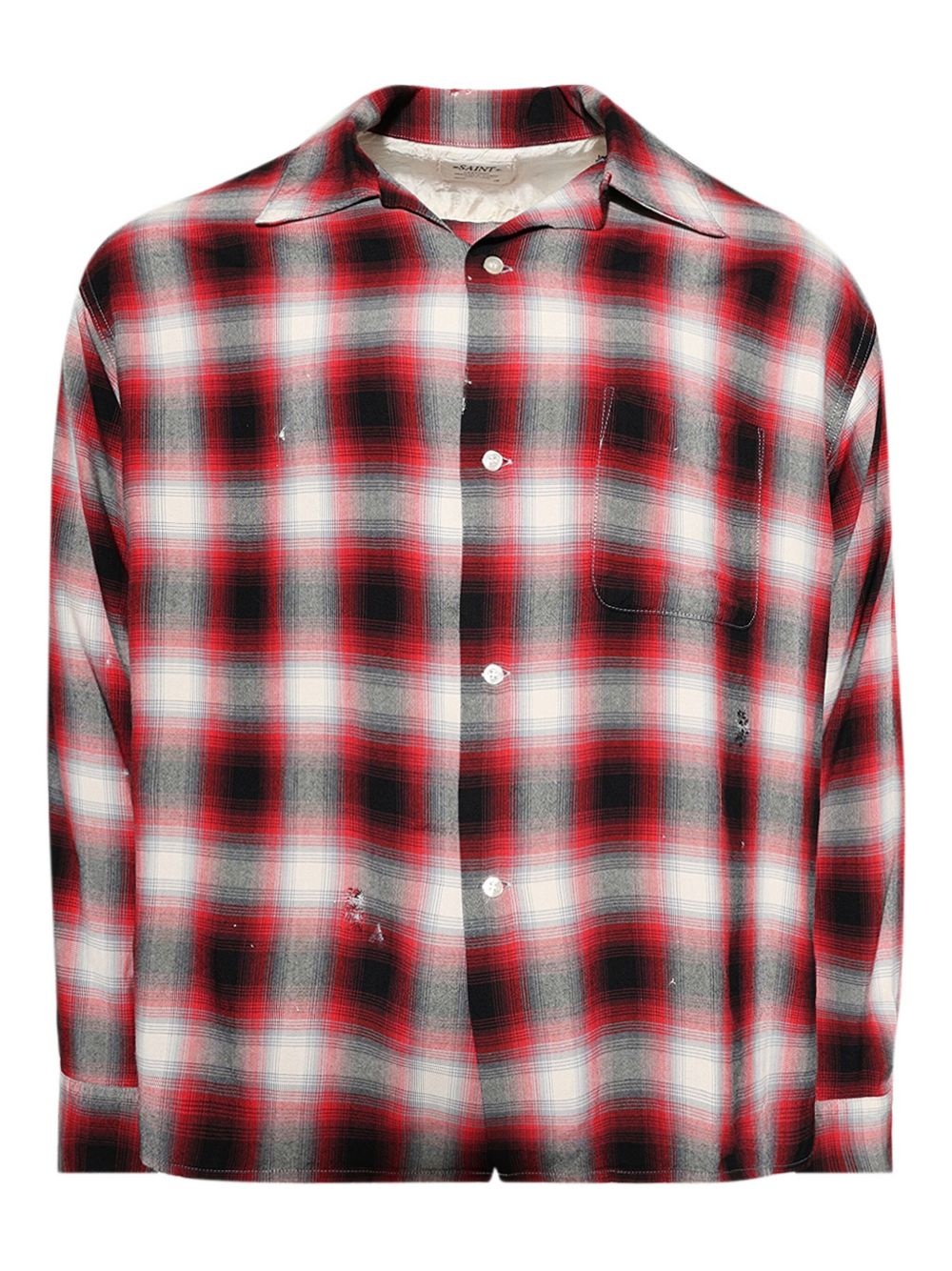 check-print shirt Highlights - Rose red - Front button fastening - Buttoned cuffs - Distressed effect - Long sleeves Imported Composition Rayon 100%