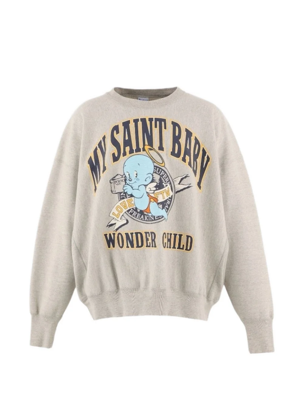 graphic-print crew-neck sweatshirt Highlights - Grey - Graphic print - Crew neck - Long sleeves - Ribbed hem - Ribbed cuffs Imported Composition Cotton 100% Washing instructions Read Manufacturer Guidelines