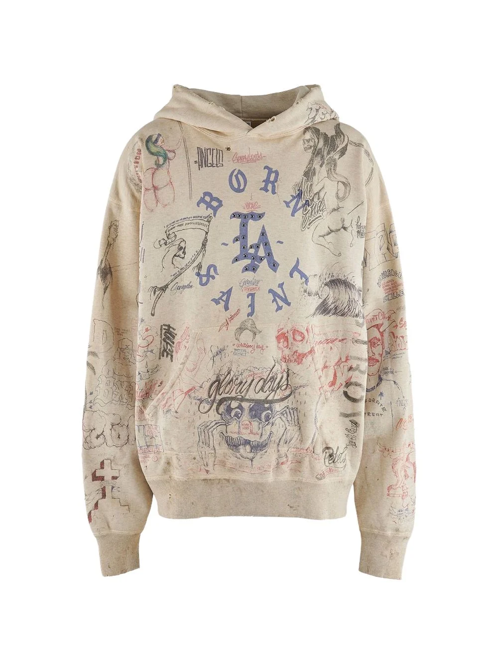 + Born X Raised Distressed Crystal-Embellished Printed Cotton-Jersey Hoodie