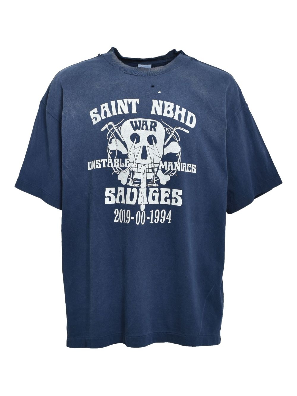graphic-print T-shirt Highlights - Navy blue - Crew neck - Short sleeves - Distressed finish Imported Composition Cotton 100%