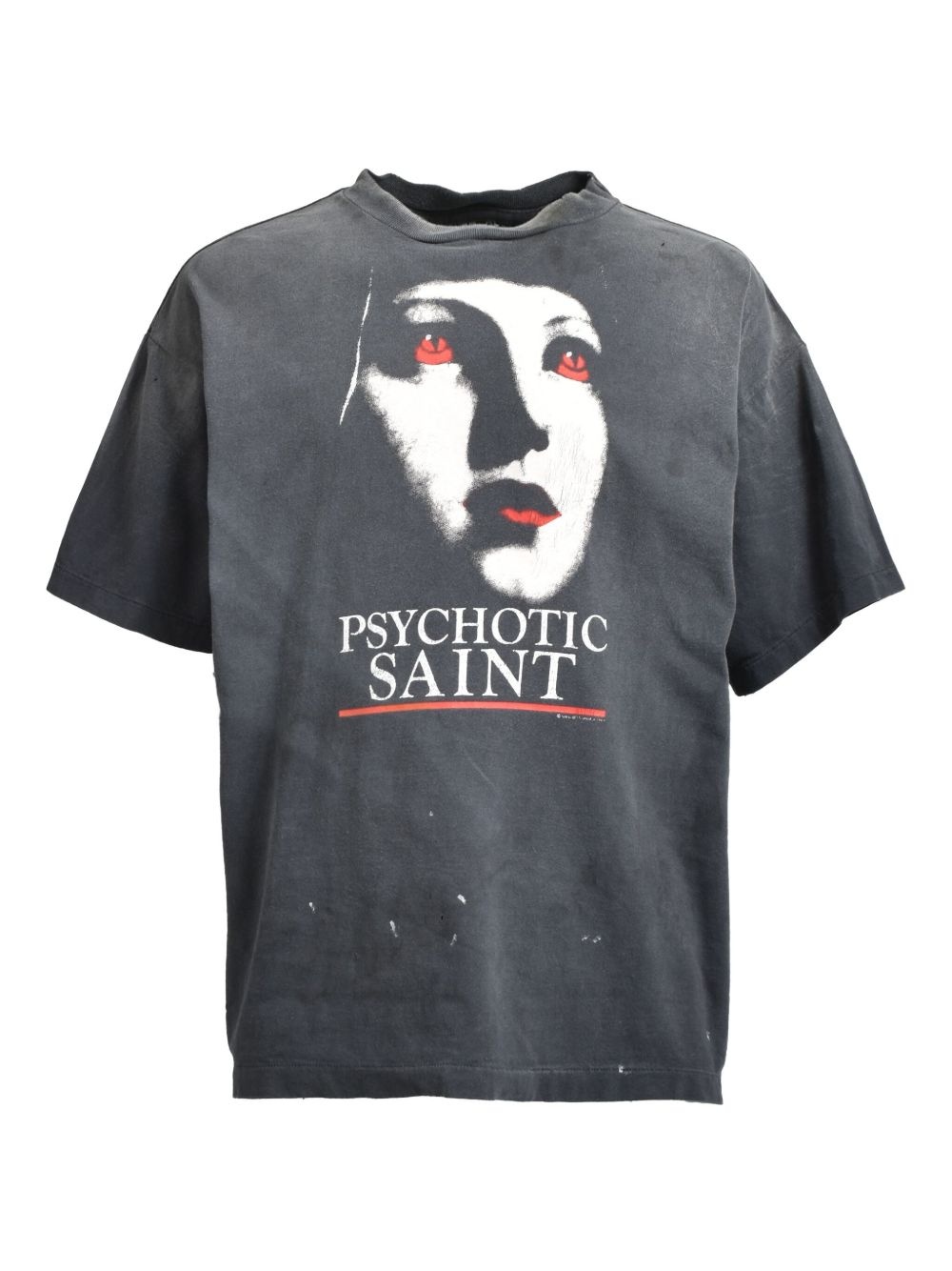 Psychotic Saint Distressed Printed Cotton-Jersey T-Shirt Black